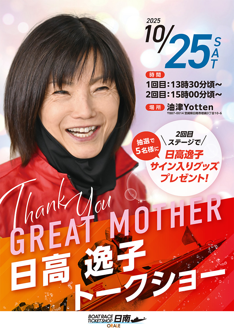 宮崎県内BTS4場では、下記日程で日高逸子(宮崎県出身)トークショーを実施いたします。この機会にぜひご来場ください。
