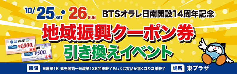 BTSオラレ日南開設14周年記念(10/23~10/28)のイベントについて