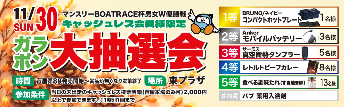 マンスリーBOATRACE杯男女W優勝戦(11/29~12/4)のイベントについて