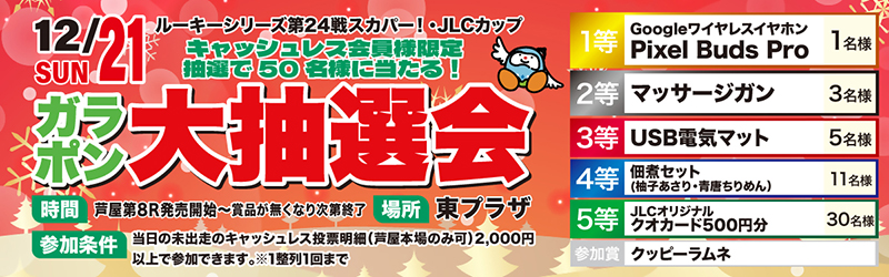 【備考】12/11(木)にボートレース芦屋で配布した抽選券を持参した方を対象とした抽選会(先着200名)