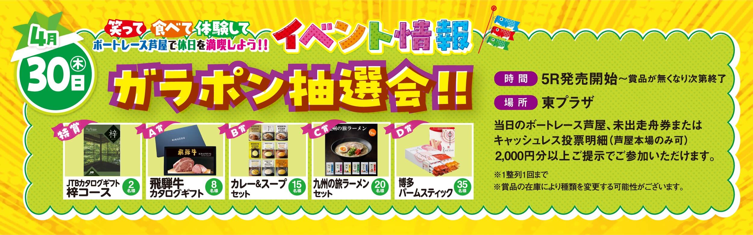 【内容】当日の未出走舟券または未出走のキャッシュレス投票明細(芦屋本場のみ可)2,000円以上で参加できます。
