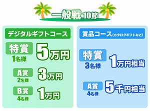 ※賞品コースは、節によってカタログギフトなど賞品内容が変更となります