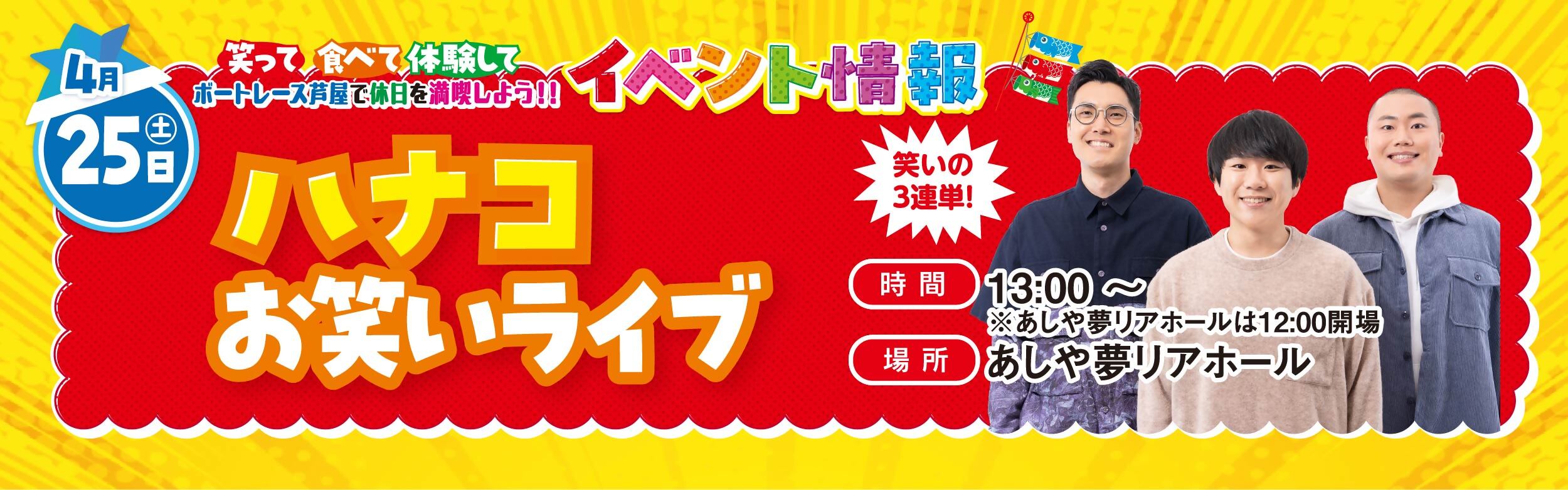 ※会場は入場無料です。(ボートレース芦屋入場料100円が必要となります。)