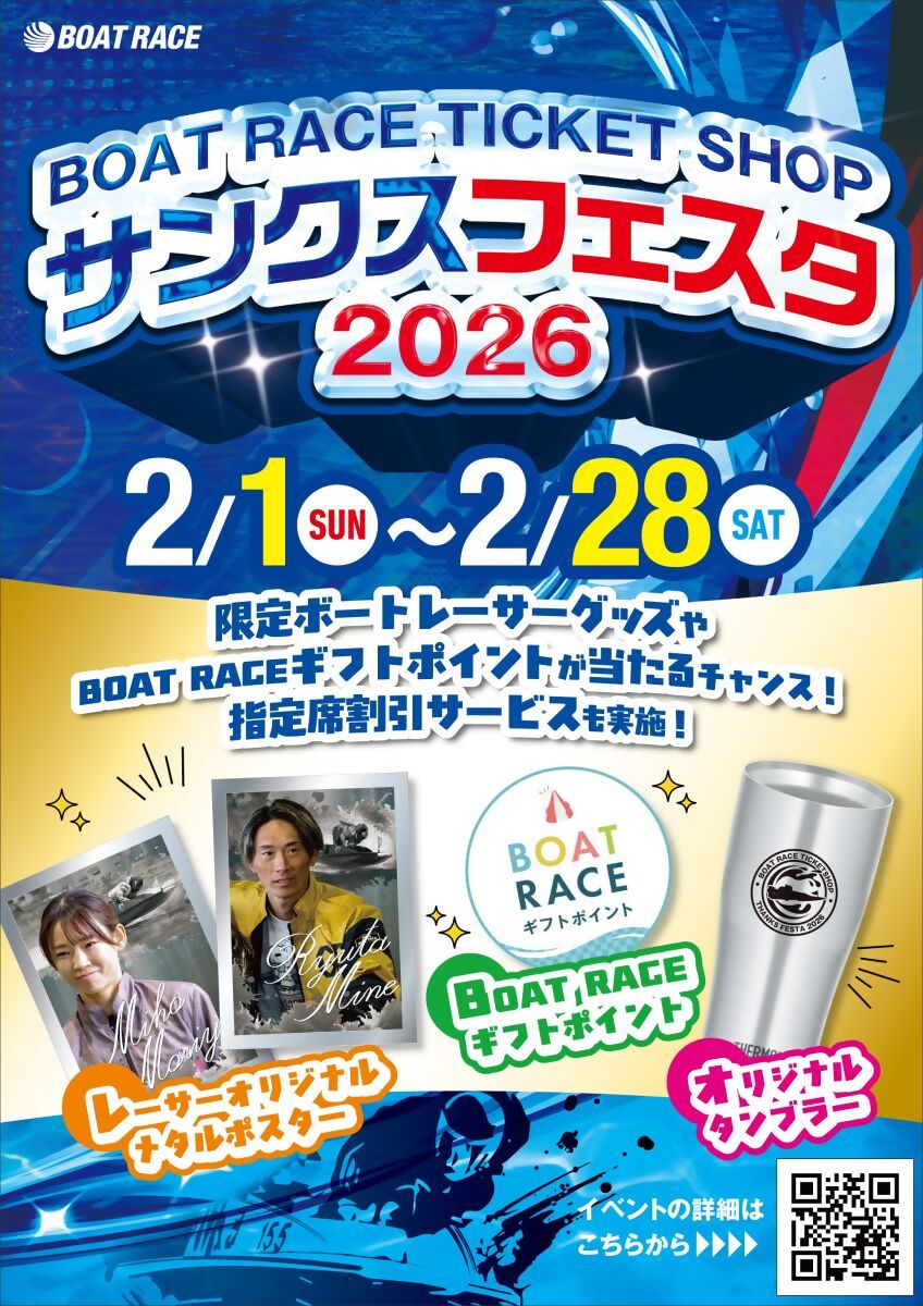 BTS勝山でも下記のとおり「BOAT RACE TICKET SHOP サンクスフェスタ2026」を実施します!!