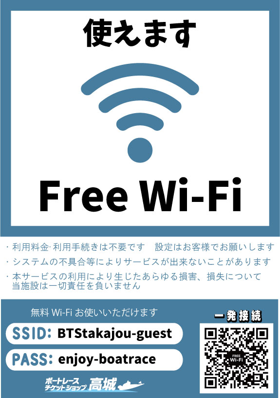 BTS高城ではフリーWi-Fiをお使いいただけます!2026.02.13