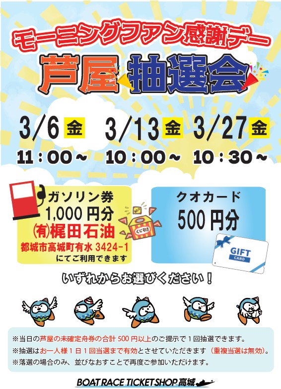 3月のBTS高城 モーニング感謝デー抽選会ご案内2026.03.01